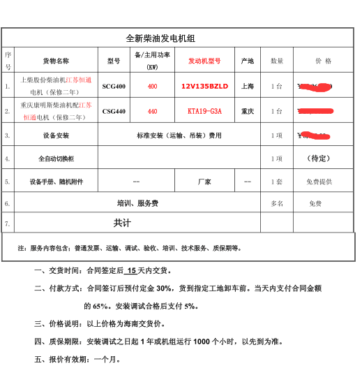 我司为海南健洋公司供应300KW发电机
