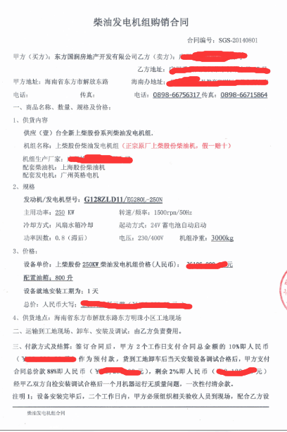 我司与国润房地产供应250KW上柴柴油发电机组