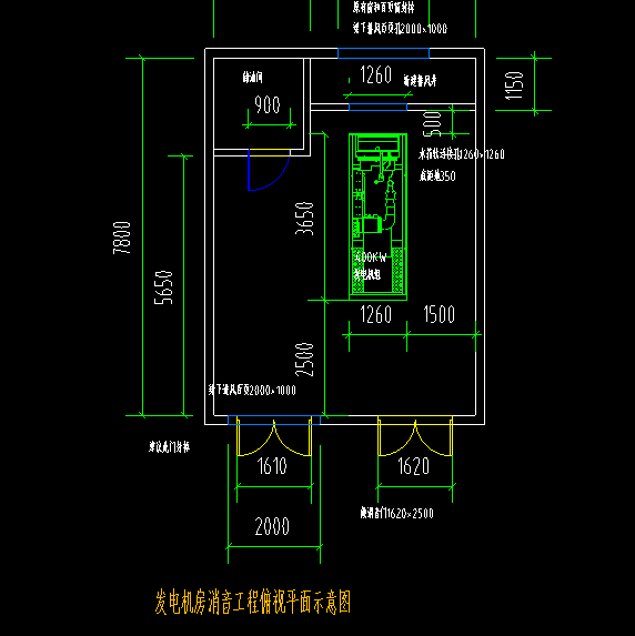 康明斯发电机房平面示意图