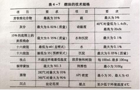 对燃油规定的技术规格如表4 -7所示。