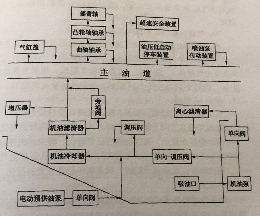 主要由机油泵、预供油泵、机油滤清器、离心滤清器、各种调节阀和润滑管路等组成。