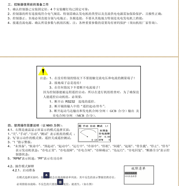 海南重康柴油发电机模块系统图和说明书