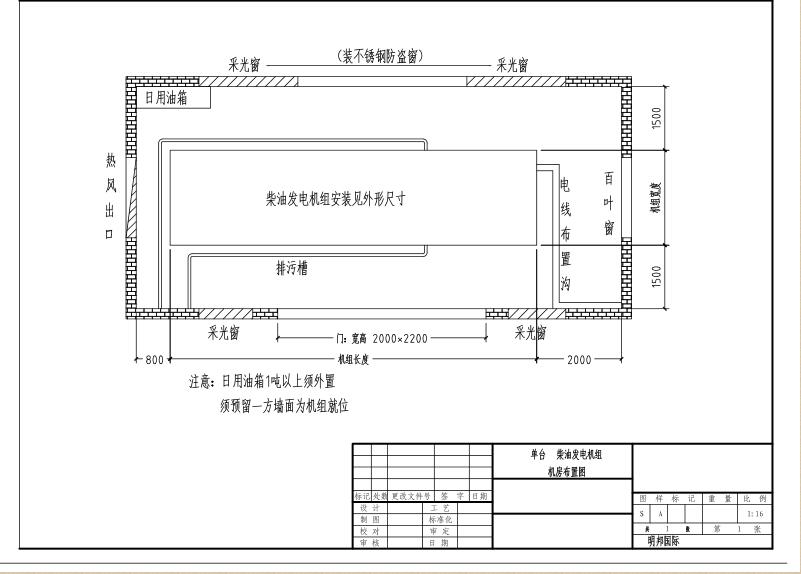 海南上柴柴油发电机组机房安装布置图方案