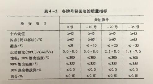 表4 -2是各牌号轻柴油的质量指标