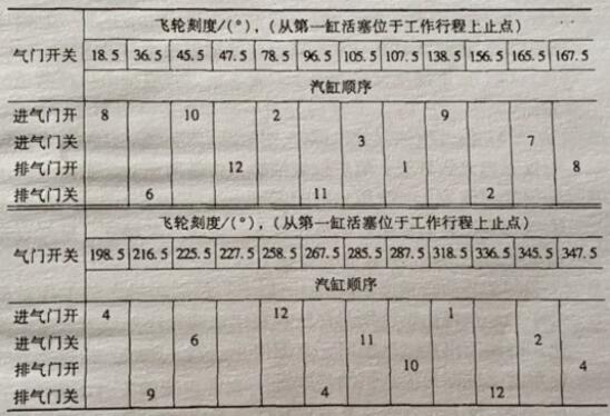 表5-7 12V(KTA19 系列、KTA50系列)柴油机配气定时检查表